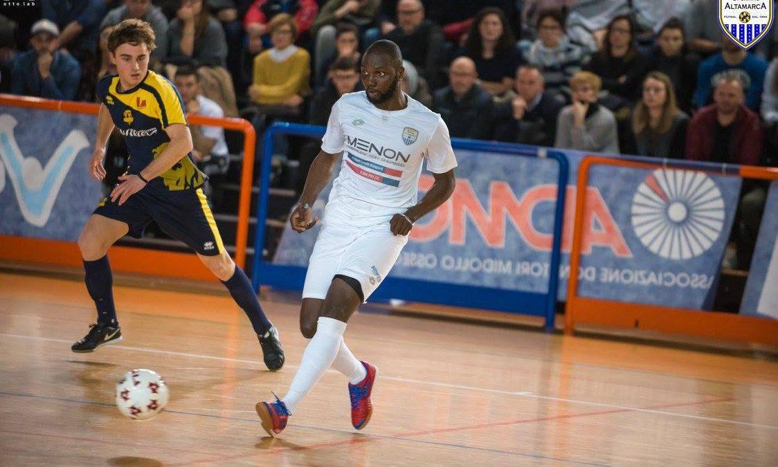 Nonostante il match si disputi di lunedì il publico arriva numeroso a Maser per assistere al terzo turno infrasettimanale ed esce più che soddisfatto delle prestazione dell’Altamarca che passa in vantaggio con Brancher servito bene da Guidolin, nemmeno un minuto e Yabre estrae dal cilindro un Eurogol con una sassata che si insacca sotto il sette dopo una progressione personale. Lo Sporting Altamarca mette in campo un ritmo importante che permette di andare sul 3-0 con Khouch su assist del solito Guidolin in versione assistman. Guerci (1999) alla seconda apparizione in prima squadra cala il poker per il suo secondo gol stagionale. Il Montecchio trova l’unica rete della serata con il giovane De Generi che concretizza l’unica vera azione degli ospiti battendo Landi. La prima frazione termina con il pokerissimo di Spagnol al termine di una grande azione corale che strappa applausi.