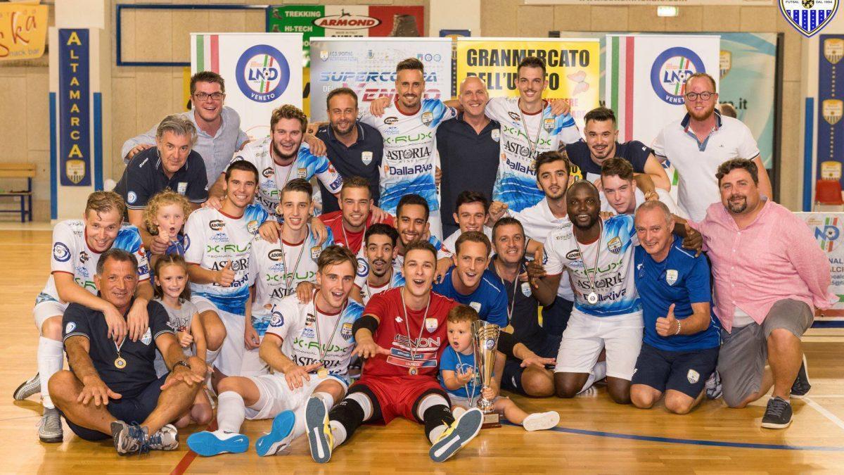 Lo Sporting Altamarca ricomincia da dove aveva finito, con un altro trofeo da mettere in bacheca, ma questa volta il sapore della vittoria è diverso, perchè vincere in casa, davanti al proprio pubblico rende la vittoria ancor più bella. Vittoria per 1-0 contro un coriaceo Hellas Verona che deve arrendersi alla rete dopo soli 3 minuti di gioco di Joao Brancher. Partita molto tirata che mette in mostra ancora i carichi di lavoro di inizio stagione delle due formazioni, ma offre comunque alti contenuti tecnici con giocatori di caratura importante sa da una parte che dall’altra. Mister Donisi spinge i suoi verso il raddoppio per portare la partita verso una direzione più tranquilla, ma così non è ed il Verona di mister Castagna cerca il pareggio nei minuti finali del match con il quinto di movimento e con l’espulsione di Er Raji per doppia ammonizione, ma devono arrendersi ad un Kovacevic che all’ultimo secondo para e decreta la vittoria della Supercoppa Veneto 2018 allo Sporting Altamarca.